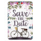 Spara Datum Bröllop eller förlovning vintage cykel (eller annan fest) blommig konsttryck. Bröllopsblomma äktenskap illustration.