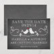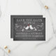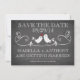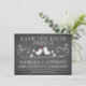 Trendigt chic vintage Spara datum anslag krit tavla bröllopsannonsering med en populär svart tavla med ett sött par kärlek fåglar med ett hjärta som sitter på en fin blomsterkvist. För en extra speciell touch koordinerar baksidan av våra inbjudningar med vår främre design. Populär krit tavla modern spara datum bröllopsannonsering. Matchande frimärken och magneter tillgängliga.