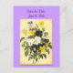 Ett Spara datum-postkort med skrivstil och utrymme för din returadress med ett omslag av vintage botaniska penséer och violetta blommor. Klicka på Anpassa för att ändra typsnitt, storlek och mer, och spara även din design för senare.