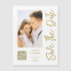 Spara Datumskript i Snyggten Vit Guld med Modern Bröllop Magnetic Card har en vit bakgrund med anpassningsbarnas foto. Anpassa texten genom att redigera texten i de angivna textrutorna och lägga till webbadressen för anpassningsbarna QR-kod. Designad för dig ©Evco Studio www.zazzle.com/store/evcostudio