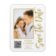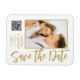 Spara Snyggten Date White Guld Script Modern Bröllop Magnets har en vit bakgrund med anpassningsbarnas foto. Anpassa texten genom att redigera texten i de angivna textrutorna och lägga till webbadressen för anpassningsbarna QR-kod. Designad för dig ©Evco Studio www.zazzle.com/store/evcostudio