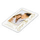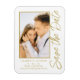 Spara Snyggten Date White Guld Script Modern Bröllop Magnets har en vit bakgrund med anpassningsbarnas foto. Anpassa texten genom att redigera texten i de angivna textrutorna. Designad för dig ©Evco Studio www.zazzle.com/store/evcostudio