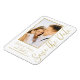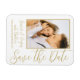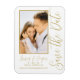 Spara Snyggten Date White Guld Script Modern Bröllop Magnets har en vit bakgrund med anpassningsbarnas foto. Anpassa texten genom att redigera texten i de angivna textrutorna. Designad för dig ©Evco Studio www.zazzle.com/store/evcostudio
