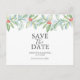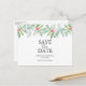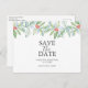 De här vykorten i julafton bröllop spara datum har en översta gräns för vintern med elegantens vattenfärg. Orden "Spara datum" är typset i grått från kol över en skarp vit bakgrund. Använda mallens fält för att lägga till personlig.. Om du vill se mer sparat datumet och hela temat bröllop går du till www.zazzle.com/dotellabelle Unik grönt foliage art och design av Victoria Grigaliunas. Om du vill ha mer information kan du läsa mer.