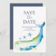 Den här födelsedagen sparar datumkorten med en grund-gräns för en blå val och en stjärna. Orden "Spara datumet" är typset i marinblått över en skarp vit bakgrund. Använda mallens fält för att lägga till anpassningsbar. Kortet återgår till ett matchande färg. Ett lysande val för 1:a födelsedagstema. Om du vill se hela födelsedagstemat och om du vill ha fler idéer går du till www.zazzle.com/dotellabelle Unik vattenfärgsgrafik och design av Victoria Grigaliunas.