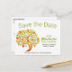 "Save the Date"-familjeåterföreningsmeddelandet på högerna och ett äpple träd till lämnat. Anpassa mallinformationen för fram- och baksidan, ta bort text och/eller klicka på anpassa för att välja det typsnitt färg, storlekt och stil som du föredrar.
