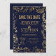 Spara datumen av elegant Navy Blue och Guld Blommi Inbjudningar
