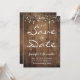 Bröllop spara datum-kort med träbakgrund och ljus. Skriv din egen text framför exempeltexten.