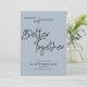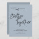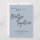 En modern informell design för att be dina gäster att spara ditt bröllop-datum med ett handskriftsskript för stil svarta set för Bättre tillsammans i mitten för att samordna med "och" i samma set-skript mellan namn. Resten av texten kan lätt bli personlig. En mörkare blå bakgrund är på baksidan. Text- och bakgrundsalternativet färg kan ändras till ett annat färg om du vill med hjälp av alternativet Anpassa ytterligare.