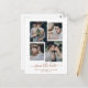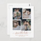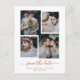 Det här enkla men ultratunna vykortet i bröllop spara datum har fyra av dina favoritfoton i ett unikt, lagrade bildskärmskort. Bho terracotta och vitkortsdesignen har elegant, handskriven skripttypografi för trendig och en punkt för bröllop-informationen i ett koordinerande sans serif-teckensnitt.