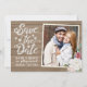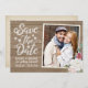 Spara datumet Bröllop | Foto på trä med blommor Inbjudningar