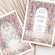 Den här krävande bröllopsinbjudan innehåller en okomplicerad Rococo-inspirerad filigree Arch som är försedd med motiv för elegantens blommigt i mjuka pastellnyanser av , blå och guld. Det känsliga mönstren, som påminner om det europeiska palrumsliga decornet, skapar ett tidlöst och sofistikerat estetiskt, perfekt för elegant och romantiskt bröllop. Den förfinade typografin kompletterar Ornate ram och ökar därmed vidden av denna konstruktion. Perfekt för par som vill ha ett lyxigt och konstnärligt bröllop-kontor som återspeglar gamla världskaraktär och regal elegans.