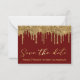 spara datumet då guld droppar glitter röd bröllop anteckningskort