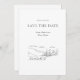 Enkel utformning i bröllop sparar datumkortet som inspirerats av berg och hästar