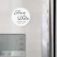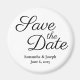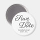 Spara inbjudan-magnet med en underbar kalligrafi stil. Anpassa färgen för vit bakgrund och svart. En medelstor runda magnet för din spara datumet.