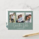Ett elegant eucalyptus bröllop spara datum-fotokort med tre fotoplaceringslayout. Med grönt av eucalyptus grönt foliage och guld typografi. Den här vackra designen sparar datum för multifoto, fotokollage eukalyptus moderna budget, enkel traditionell förlovning, traditionell snyggt med klassisk handstil, ett botaniskt grönt enkelt kalligrafi, modernt grönt löv, vattenfärg eukalyptus lämnar trädgården, enkelt minimalistiskt typografiskt trendig, en elegant modern kalligrafiklass,3 fotomall tre layouter .