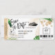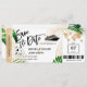 Boardingkortet för destinationsbäckenet Biljett Guld Flygplan Spara datumet med ikonen för kryssad Frakt med tropiska löv