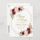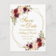 Spara datumet för Burgundy Blommigt Guld Ram Meddelande Vykort