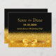 födelsedagsfest av elegant, klassisk, glamorös och feminin stil 80:e (eller i någon ålder) förutom datum. Ett faux färgad-band och en fluga i guld. Svart bakgrund. Med texten: Spara datumet på framsidan skrivet med ett modernt block brev. Anpassa och lägg till datum och namn/text.