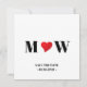 Spara den söta röda anpassningsbarna med initialer i ett modernt typografiskt minimalistiskt moderkort för elegant. Anpassningsbar svart serif initialer, rött hjärta, vit bakgrund med helt anpassade svart text. Underbart hälsningskort för förlovning, Alla hjärtans dag, bröllop, förlovning, årsdag, pojkvän, flickvän, par, nyfödda, BFF, vänner osv. Se resten av samlingen för matchande samordningsobjekt.