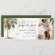 drömmer du om ett romantiskt strandbröllop? Fallande i kärlek med sanden under dina fötter, havsabborre och en vacker horisont? Vår stranddestination som räddar datumet bröllop biljett är perfektens sätt att göra er stora dag ännu speciellare. Med romantiskt vattenfärgstropiskt handflatan träd, ett foto av bruden/groomen, en kompass och en elegant sparar den datummall som är enkel att anpassa.