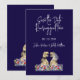 Gör ditt stora tillkännagivande oförglömligt med denna fantasifulla dinosaurie "Spara datumet" mörkblå bröllopsinbjudan perfekt för par som vill ha en rolig, unik twist på deras bröllopspapper. Denna charmiga design har en lekfull T-Rex brud och brudgum i en färgrik äng med vilda blommor med rosa, blå, röda, gula, orange, lila och rosafärgade akvarellblommor som ger personlighet och humor till din speciella dag.