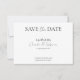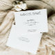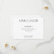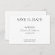De moderna minimalistiska svarta och vita bröllop spara datum-korten har svart text på en klassisk vit bakgrund. En enkel och klasslig design. Anpassa datuminbjudan med din bröllop-information och använda "redigera med designad verktyg" på Zazzle för att redigera all text, typsnitt, bakgrundsbild färg, färg och alternativ för att ladda upp och lägga till ditt favoritfoto på inbjudan baksidan. Om du vill ha fler inbjudningar till bröllop spara datum går du till vår Spara datumsamlingen på https://www.zazzle.co.uk/collections/save_the_dates-119327072976167840