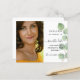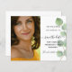 Ett modernt foto och ett foto med elegant Spara datumkortet. En chic vit bakgrund som dekorerats med eukalyptus greenery. Anpassa och lägg till foton och detaljer.