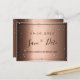 Spara datumkortet för en 50:e (eller någon ålder) födelsedagsfest för en kille, man, man. En faux bronze tittar bakgrund som dekorerats med bubblor och en smal svart ram. Mallar för ett datum och namn/ålder 50. Svart färgad brev. Texten: Spara datumet skrivs med ett stort trendig-handskript i stil. Baksida: faux bronze, brun bakgrund med några bubblor. Tips! Om du inte vill att det ska se ut som ett vykort klickar du på anpassa, går till baksidan och tar bort delaren och lägger till frimärke.