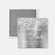 Faux silver glitter med en grått faux foil för dina bröllop spara datum små kvadratmagneter. Det dekorativa teckensnittet "Spara datum" är ett klassiskt finare-kalligrafi i stil som parats med ett modernt teckensnitt i stil. Den gigantiska glam-glitter och folie-digitala konsmönstren skrivs ut som ett foto på den här magneten.