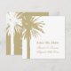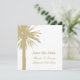 Spara datumet för sandy handflatan träd-badplatskort. Tropisk designmall med utskrift på två sidor. Underbar för sommar- och destinationsbröllop.