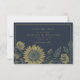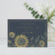 Lägg märke till din stora dag med tidlös charm med hjälp av det här marinblåa Spara datumkortet, som är märkt med solrosillustrationer med gyllene gulter och ett förfinat tryckt gräns med guld-tonad färg. Elegantens typografi är perfekt centrerad för att belysa ditt namn- och bröllop-datum och skapar det som ett perfekt val för strålande men sofistikerat firande. Koordinerar på ett utmärkt sätt insamlingen av fullt- och solrosstationaler. Anm.: guld är ett platt tryckt färg, inte folie eller metall.