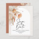 budgetera en inbjudan från den moderna bohemiska terracotta naturen pampasgräs snyggt bröllop spara datum.