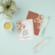budgetera en inbjudan från den moderna bohemiska terracotta naturen pampasgräs snyggt bröllop spara datum.