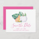 Anteckna din flickdusch med min tropiska spara datuminbjudningarna med ord Spara Vårt Datum i ett trendig-skript, typografi stil som frammanar utseendet av handskriften. Det här enkla kortet innehåller en kopia av min ursprungliga vattenfärgsröda räv med monstera löv och vit pumpkin med namn, duschdatum och plats. Kort som går tillbaka till kompletterande fast rosa färg. Perfekt till september, oktober och november tropiska tematiska babyduschar. Om du vill se fler idéer och thanksgiving baby-meddelanden från Victoria Grigaliunas besöker du www.zazzle.com/dotellabelle.