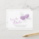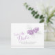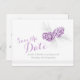 Spara datumet för vinterkonerna gräs lila bröllop meddelande vykort
