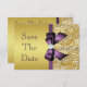 Elegant, personlig anpassningsbar guld och platta lila födelsedag sparar datumkorten med vackra följesedlar, blanka kryss och rosett band- och söt diamanter på en glamorös guld-gradientbakgrund. OBSERVERA: Det här är platt tryckt grafik - inga upphöjda delar.Om du behöver hjälp med att anpassa produkten kontaktar du mig genom min butik. Jag kommer att vara lycklig för att hjälpa till.