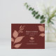Meddela bröllop om en budget med detta moderna, minimalistiska Spara vykort för datum, perfekter för budgeterade bröllop! Med en enkel terracotta grey-design med dina detaljer i vitt över en maronbakgrund ger det här kortet en contemporary beröring. På baksidan finns utrymme för ditt pars foto och utrymme för skriva av mottagarens adress, skapar det både praktiskt och elegant. Idealisk för dem som tittar för vackra Spara datuminbjudningar till en budget. Upptäck fullt och burgunj bröllop-stationär samling på www.zazzle.com/dotellabelle. Spara datumet på spanska som är tillgängligt på begäran!