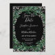 Med dessa kan du spara datumkorten med löv för grönt av vattenfärg och vita blommor mot svart bakgrund. Det finns ett monogram på baksidan. Dessa inbjudningar är en del av en samling bröllop som omfattar andra matchande bröllop-produkter. Besök insamlingssidorna i vår butik för att se fullt med bröllop och möhippa-produkter som du kan anpassa för bröllop.