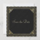 Elegant och snyggt guld gräns på den texturerade svarta bakgrunden "Spara datum"-kort som kan anpassas.