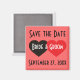 Med det här alternativet sparar du datummagneten med svarta och röda hjärtan som täcks av malltexten "brud och groom". Malltexten "spara datumet" visas ovanför hjärtan och malltexten för datumet visas nedan. Utformningen kan anpassas för en förlovningsfest, möhippa, repetitionsmiddag, bröllop, årsdag eller valentins spara i party eller festtjänst.