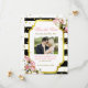 Ett mycket vackert svart och vitt randigt, guld-konfetti med rosa rosor och brudslöja spara datumet meddelande.