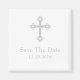 Märk dina gäster att spara datumet med den här vackra anpassadet magnet. Perfekt för Bröllop, baptismer, bekräftelser och första fackföreningar. Ytterligare text kan läggas till.
