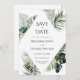 Meddela din bröllop-dejt med den här tropiska inspirerade, spara datumkortet. Med vibranta gröntar och en lush botanisk löv är det perfekten att ange tonen för ett mål eller ett strandbröllop. Anpassa med ditt bröllop-datum och detaljer om du vill få ett minnesvärt första intryck.