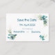 Den här moderna och lilla besparingen av datumet har blommigt- och fjärilmotiv i grönt/blå skuggor.