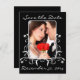Svart och vitt Bröllop spara datum med ditt fotografi Löv Ram i Silver eller för 25:e Bröllop-årsdagen Royal Svarsskydd mot OSA från svarta Damaskus Bröllopapper som visas med det vackra pappra färg som syns - du väljer bakgrundsbild färg från nästan 200 färger och som ändrar färger, så klicka på att anpassa och skapa din inbjudan av ett slag! som visas med korall och liljor! lac typsnitt - du väljer även färger i typsnitt - om du vill ha en glansig avsluta (glansig endast på framsidan) som beställer det enkla, linne eller metalliska - för en avslutat beställning som återanvänds, känns eller spräckt.