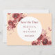 En söt burgundy och persikofärgad vattenfärg för blommigten "Spara datum"-inbjudan har en djup röd blomdesign. Denna inbjudan är underbar för alla säsonger. Bakgrunden är persikor och blommor och teckensnitt. Anpassa din i dag!