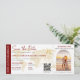 Inbjudan till ombordstigningskort bröllop biljett med en världskarta för elegant guld, kompass, flygplan, en inbjudan till personlig för bröllopsinbjudan och en avdelning för osa.