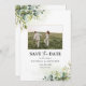 Spara datumet med fotokortet i stor skala. Den här snyggten och eleganten Inbjudningskort för möhippan har en strålande, handmålad vattenfärg Greenery. Hitta matchande objekt i Greenery Eucalyptus Blommigt Collection.