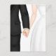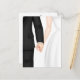 Brud och brudgum håller hand på vit bakgrund.